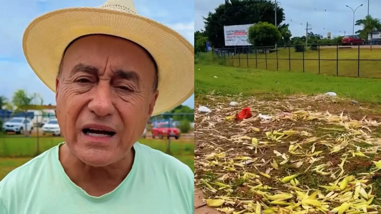 “A nossa cidade está cada dia mais bonita, mais limpa. Vocês estão vendo aí a nossa rotatória aqui do Lago do Amor, mas bem aqui do lado da rotatória olha o que eu encontro: alguém veio aqui pra poder vender milho, vendeu e largou toda sujeira aqui. Gente, vamos ajudar a cuidar da nossa cidade, não faça isso aqui não, você precisa entender que você também é responsável pela limpeza, pelos cuidados da nossa cidade. A prefeitura não dá conta de correr atrás de todo mundo que suja a cidade e limpar não, todo mundo que suja precisa limpar”, declarou o prefeito.