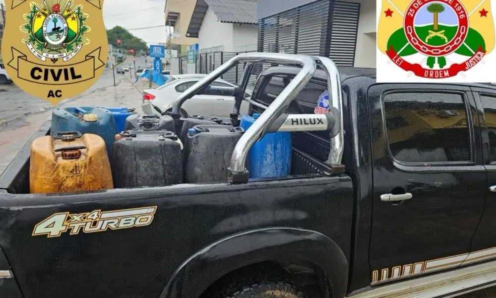 Polícia apreende 400 litros de combustível obtidos por meio de estelionato em Cruzeiro do Sul