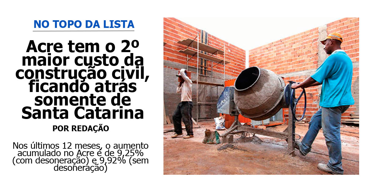 Acre tem o 2º maior custo da construção civil, ficando atrás somente de Santa Catarina