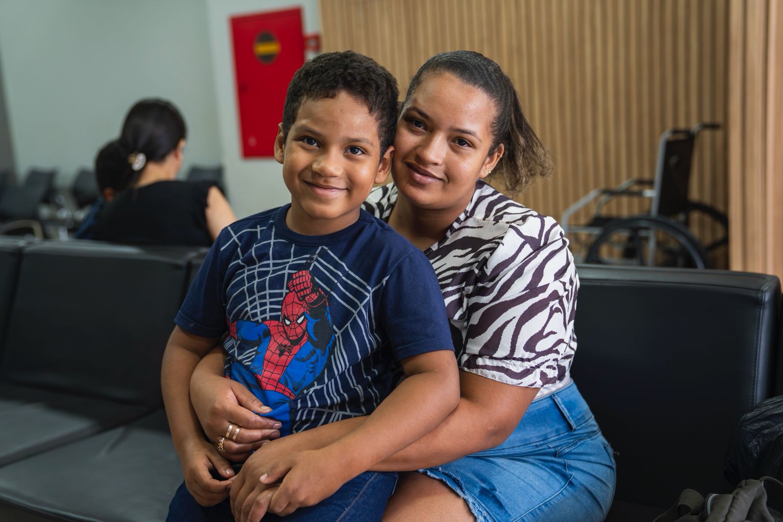 A dona de casa Gelzivania Pereira dos Santos, de 24 anos, veio de Epitaciolândia pra que o filho Paulo Sérgio, de 7 anos fizesse o exame.
