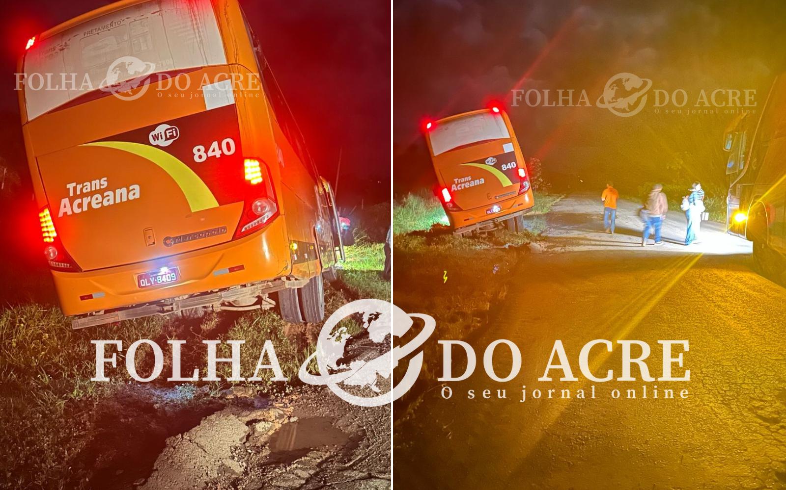 Um acidente envolvendo um ônibus da Transacreana na madrugada desta segunda-feira (19) quase termina em tragédia na BR-364, entre Sena Madureira e Rio Branco. O veículo estava com passageiros que saiu de Cruzeiro do Sul com destino à capital acreana.