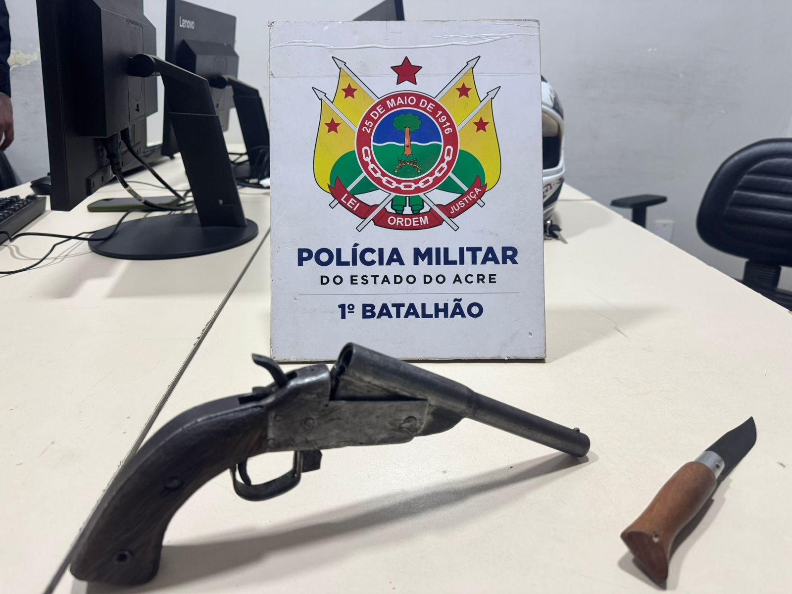 Diante dos fatos, os policiais deram voz de prisão ao criminoso, que foi conduzido à Delegacia Central de Flagrantes (Defla), com a arma apreendida, para prosseguimentos das medidas legais cabíveis aos fatos.