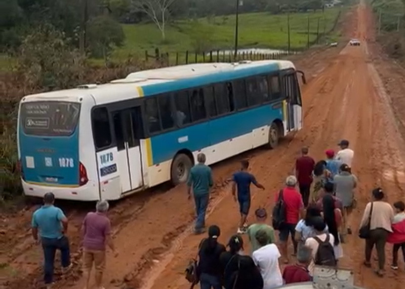 Na manhã desta terça-feira (29), vários acidentes de motos, por conta da pista escorregadia, foram registrados por populares que passavam pelo local. Um ônibus também atolou no local.