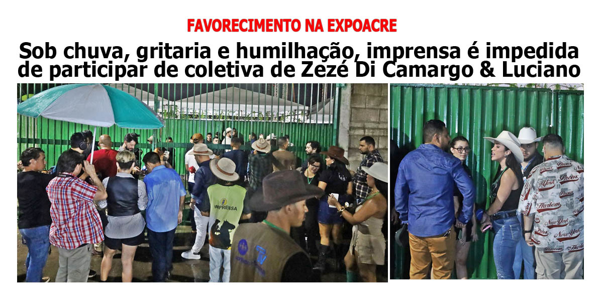 Sob chuva, gritaria e humilhação, parte da imprensa é impedida de participar de coletiva de Zezé Di Camargo & Luciano na Expoacre