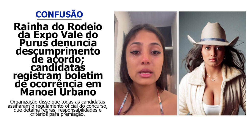 O concurso que abriu a 3ª Expo Vale do Purus, realizada em Manoel Urbano no último sábado (23), ganhou novos desdobramentos. Maria Lúcia Dias da Silva, eleita Rainha do Rodeio 2025, e outras candidatas denunciam que os valores pagos pela organização do evento não seguem o que havia sido combinado antes da disputa.