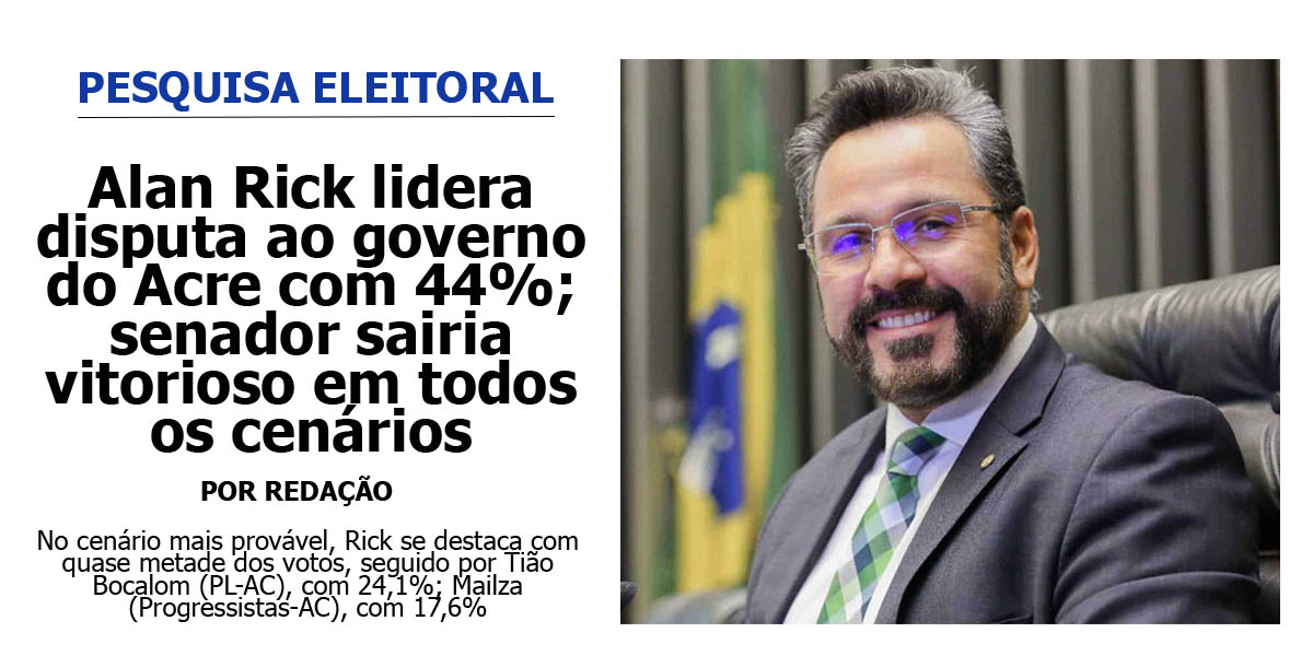 Alan Rick lidera disputa ao governo do Acre com 44%; senador sairia vitorioso em todos os cenários