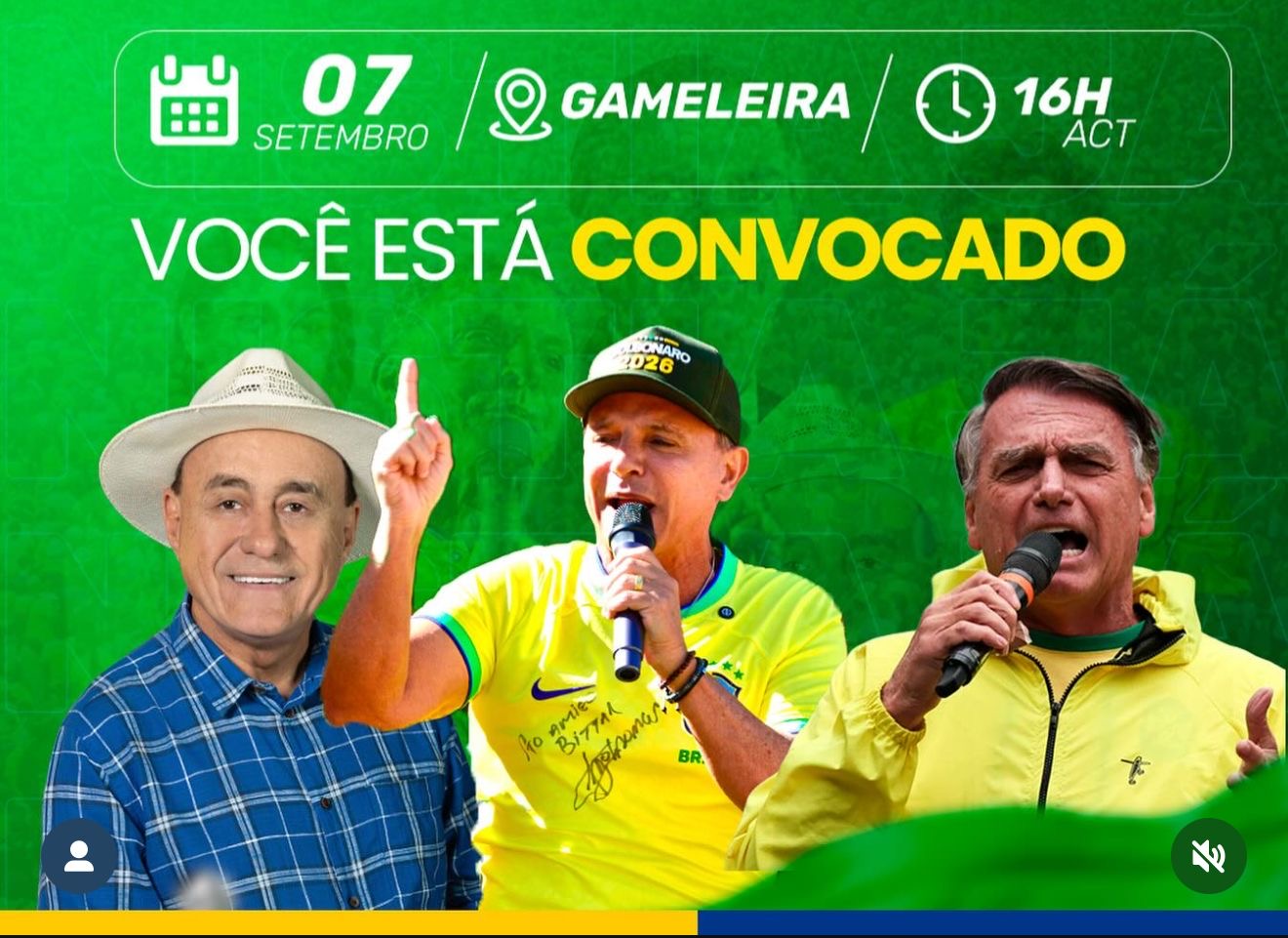 Bolsonaristas de todo o país estão organizando manifestações em diversas cidades do Brasil no próximo dia 7 de setembro, data em que se celebra a Independência do país. No Acre, o ato será realizado na Gameleira, em Rio Branco, a partir das 16h.