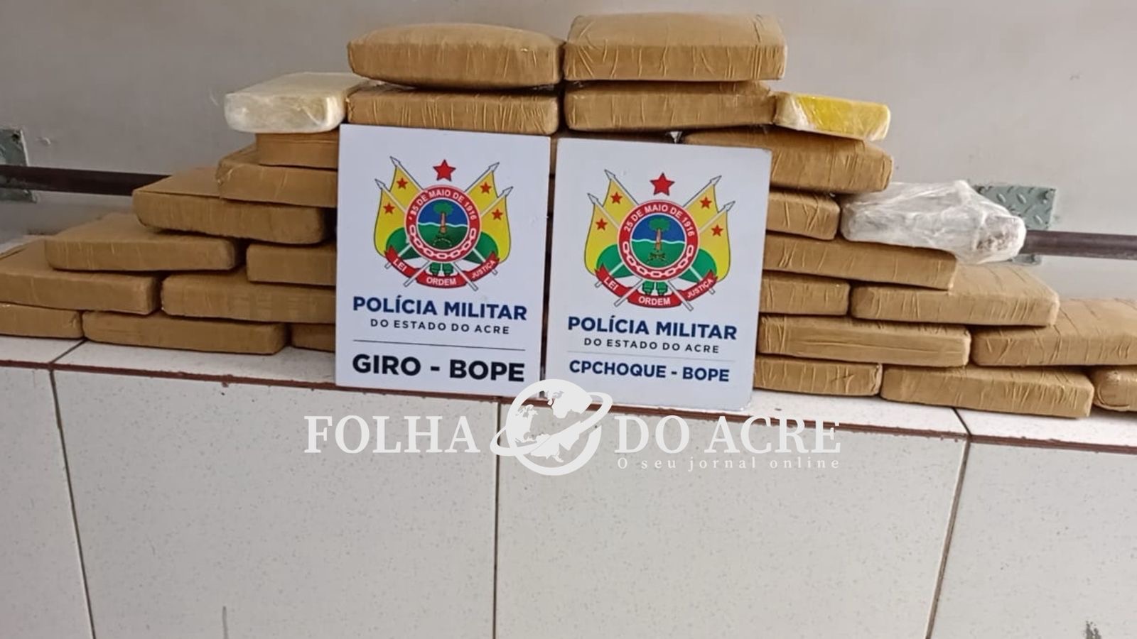 Após uma varredura no local, foi descoberto 33 tijolos de entorpecentes aparentando ser maconha, que após ser pesado totalizou 33,9 kg da droga, e 2 tijolos de cocaína que, após ser pesado totalizou 1,9 kg.
