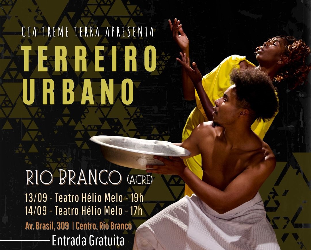 A Cia Treme Terra se apresenta no Teatro Hélio Melo nos dias 13 e 14 de setembro com o espetáculo “Terreiro Urbano”. A entrada é gratuita.