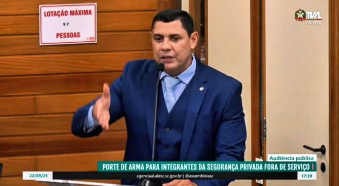 O deputado federal Coronel Ulysses (União Brasil-AC) participou nesta terça-feira (22), na Assembleia Legislativa de Santa Catarina, de uma Audiência Pública em defesa da segurança privada. Na condição de Presidente da Frente Parlamentar da Segurança Privada na Câmara dos Deputados, o parlamentar reforçou seu compromisso com a categoria e destacou a importância de avançar em pautas históricas, em especial o porte de armas para vigilantes.