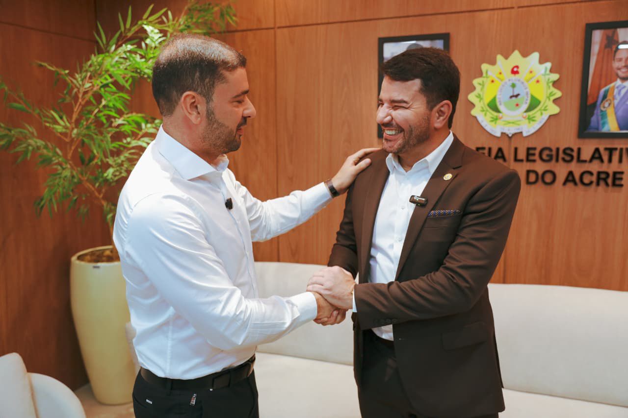 O governador do Acre, Gladson Cameli, visitou a Assembleia Legislativa do Acre (Aleac) nesta segunda-feira (29). O chefe do Executivo foi recebido pelo presidente da Aleac, deputado Nicolau Junior.