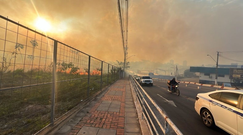 Um terreno que fica ao lado da Associação Atlética Banco do Brasil (AABB) foi atingido por um incêndio de grandes proporções na tarde de terça-feira (23).
