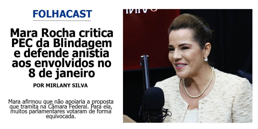 Durante entrevista ao FolhaCast, podcast oficial da Folha do Acre, nesta terça-feira, 23, a ex-deputada federal Mara Rocha fez duras críticas à chamada PEC da Blindagem e também se posicionou a favor da anistia irrestrita aos envolvidos nos atos de 8 de janeiro de 2023.
