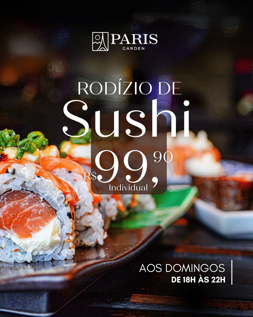 O restaurante Paris Garden acaba de anunciar mais uma opção gastronômica especial para seus clientes: o rodízio de sushi. A novidade acontece aos domingos, das 18h às 22h, e promete ser uma experiência saborosa e completa para os amantes da culinária japonesa.