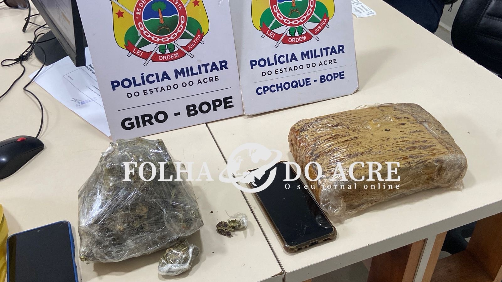 Uma guarnição do Batalhão de Operações Especiais (BOPE), através da companhia CHOQUE, realizava um patrulhamento preventivo e ostensivo na tarde desta quarta-feira (03), no bairro Alto Alegre, parte alta de Rio Branco, quando ao passar pela rua São Pedro com a travessa Paraíba, perceberam a atitude suspeita de um indivíduo que tinha acabado de sair de uma residência.