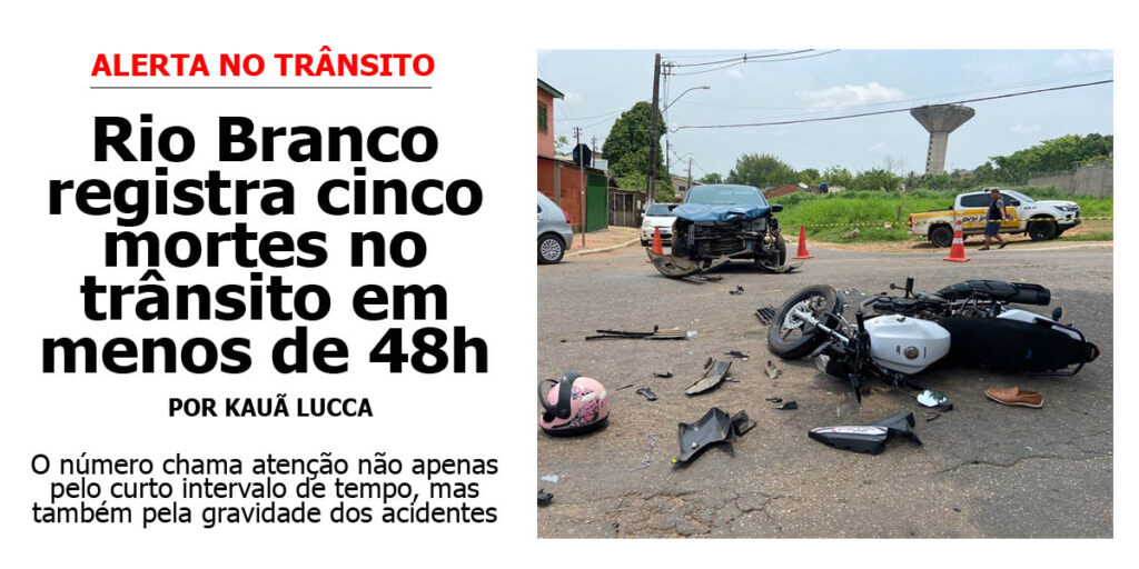 Em menos de dois dias, Rio Branco contabilizou cinco mortes no trânsito, em diferentes pontos da cidade. Três das vítimas perderam a vida no Segundo Distrito da capital, nos bairros Quinze, Santa Inês e Vila Acre. Outras duas mortes ocorreram na rodovia Transacreana, na zona rural.