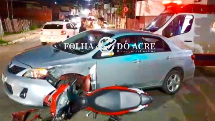 Acidente entre carro e moto em um cruzamento deixa uma mulher ferida em Rio Branco