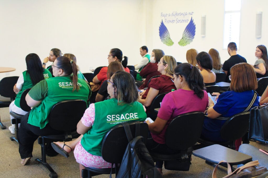 A Secretaria de Saúde do Acre (Sesacre) realizou, nesta segunda-feira, 20, a qualificação “Fluxo de atendimento, notificação e manejo clínico das intoxicações exógenas após consumo de bebida alcoólica adulterada por metanol”, no auditório do Pronto-Socorro de Rio Branco.