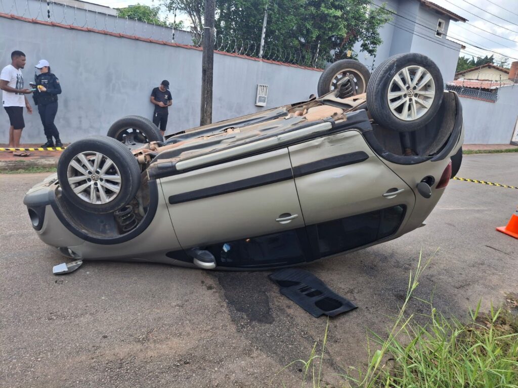 Idosa de 73 anos fica ferida após carro capotar em acidente no bairro Morada do Sol, em Rio Branco