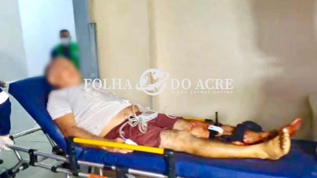O idoso sofreu um ferimento corte contuso extenso na perna esquerda, perdeu muito sangue, porém, seu quadro clínico foi considerado estável.