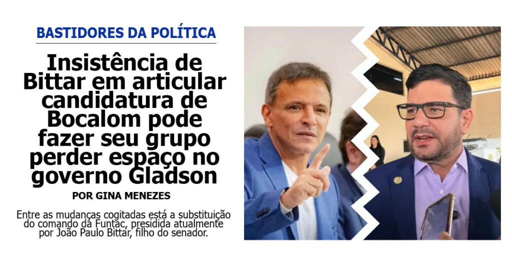 A movimentação do senador Márcio Bittar (União Brasil) para lançar a pré-candidatura do prefeito Tião Bocalom ao governo do Acre em 2026 tem provocado tensão dentro da base aliada do governador Gladson Camelí e pode custar caro ao grupo do parlamentar.