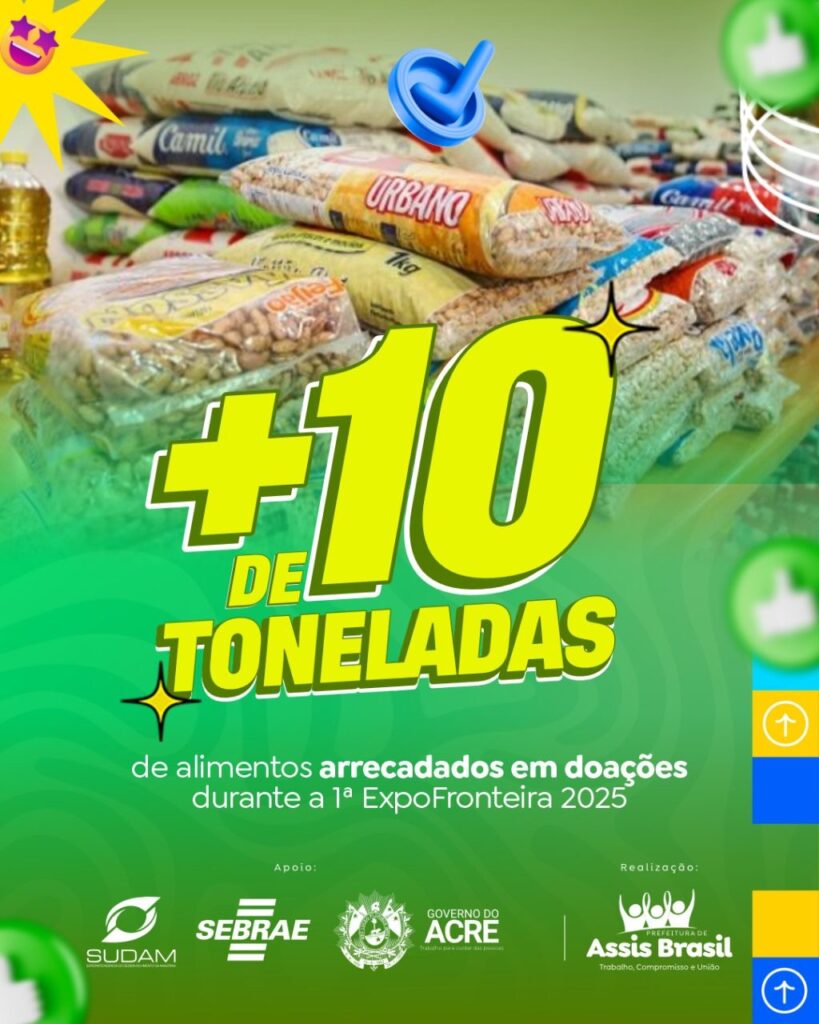 A 1ª edição da Expo Fronteira 2025 foi um sucesso não apenas de público e entretenimento, foram arrecadadas mais de 10 toneladas de alimentos não perecíveis, resultado da troca das pulseiras de acesso aos shows por doações feitas pela população.