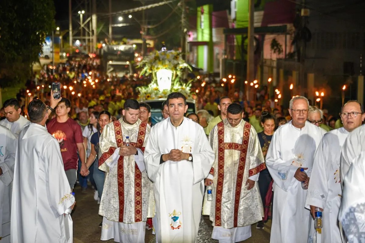 O cortejo foi marcado por cânticos, orações e homenagens à Nossa Senhora de Nazaré. A programação foi encerrada com uma missa especial na Diocese, reunindo fiéis em um momento de gratidão, fé e celebração.