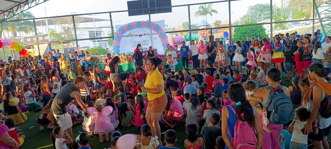 O evento foi realizado na Praça 28 de Abril, dentro da quadra sintética, e reuniu centenas de famílias em um clima de alegria, diversão e confraternização.