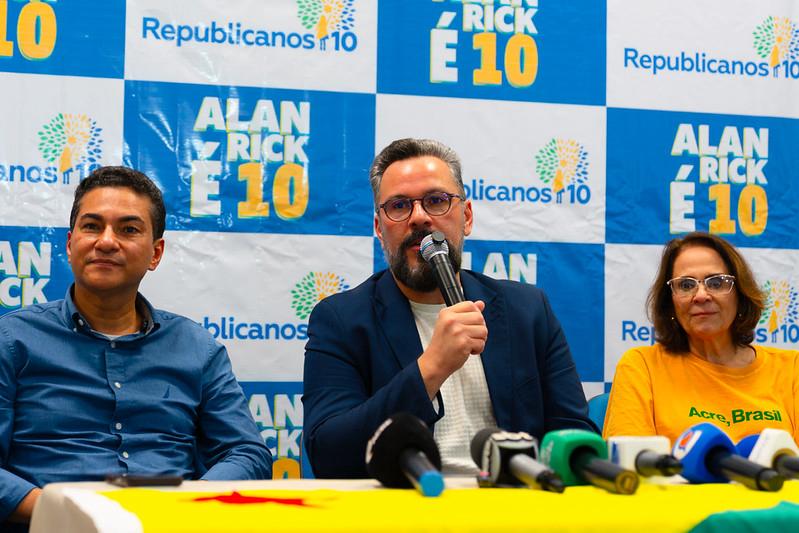O senador Alan Rick afirmou neste sábado (8/11), em entrevista coletiva realizada no Aeroporto Internacional de Rio Branco, que alianças políticas devem ser construídas com base no compromisso com a população. A declaração foi feita poucas horas antes do ato de filiação ao Republicanos, marcado para às 16h, no Sesc Bosque.