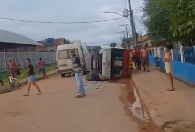 O acidente ocorreu por volta do meio da tarde e surpreendeu moradores que passavam pelo local. Com o impacto da batida, o veículo de socorro acabou virando na pista. Imagens feitas por populares mostram a ambulância tombada e a caminhonete com danos na parte frontal.