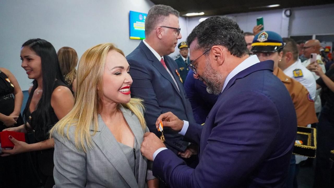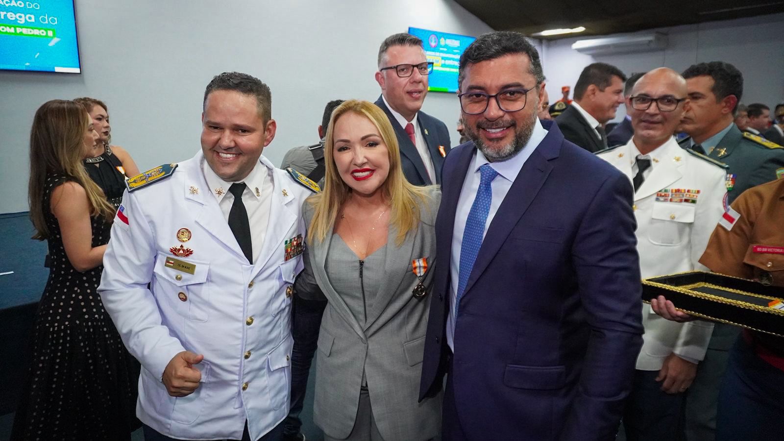 O governador do Acre, Gladson Camelí, e a presidente do Departamento de Estradas de Rodagem, Infraestrutura Hidroviária e Aeroportuária do Acre (Deracre), Sula Ximenes, receberam nesta terça-feira, 25, em Manaus, a Medalha Imperador Dom Pedro II, a maior honraria concedida pelo Corpo de Bombeiros Militar do Amazonas (CBMAM) e entregue pelo governador do Amazonas, Wilson Lima.