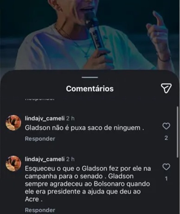 “Esqueceu o que o Gladson fez por ele na campanha para o Senado. Gladson sempre agradeceu ao Bolsonaro quando ele era presidente pela ajuda que deu ao Acre. Gladson não é puxa-saco de ninguém”, escreveu.