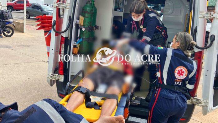 O motoboy Cauã dos Santos Silva, de 21 anos, ficou gravemente ferido após colidir a motocicleta que pilotava contra um veículo elétrico em Rio Branco. O acidente aconteceu no cruzamento das Rua Bom Jesus com a Benjamim Constant, no bairro Calafate.