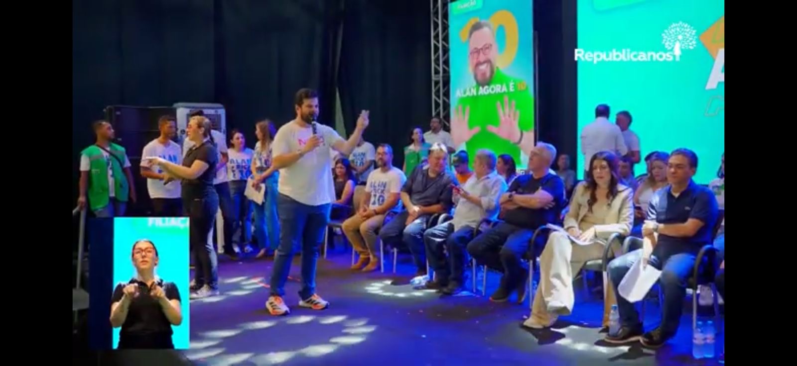 O presidente do Partido Novo no Acre, Wille Viana, foi uma das lideranças presentes no ato de filiação do senador Alan Rick ao Republicanos, realizado neste sábado (8), em um ginásio do Sesc lotado, em Rio Branco. O evento marcou o lançamento simbólico da pré-candidatura de Alan Rick ao governo do Acre em 2026.