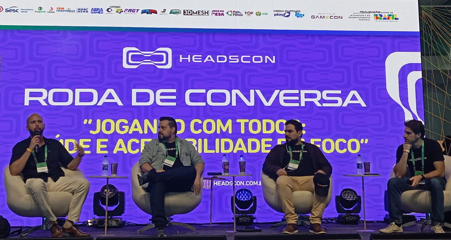 O painel teve mediação de Marcelo Minutti, curador geral da Headscon, e contou com o desenvolvedor Felipe Lobo (estúdio Flameseed Productions), Felipe Negrão (coordenador de operações da AbleGamers Brasil) e do psiquiatra Jimy Ramos. Minutos antes, o espaço estava cheio, com público atento às coreografias do animado Palco Livre K-Pop. Quando as cadeiras começaram a esvaziar na transição para o debate, Lobo observou: “É normal dar uma esvaziada quando o assunto é sério”.