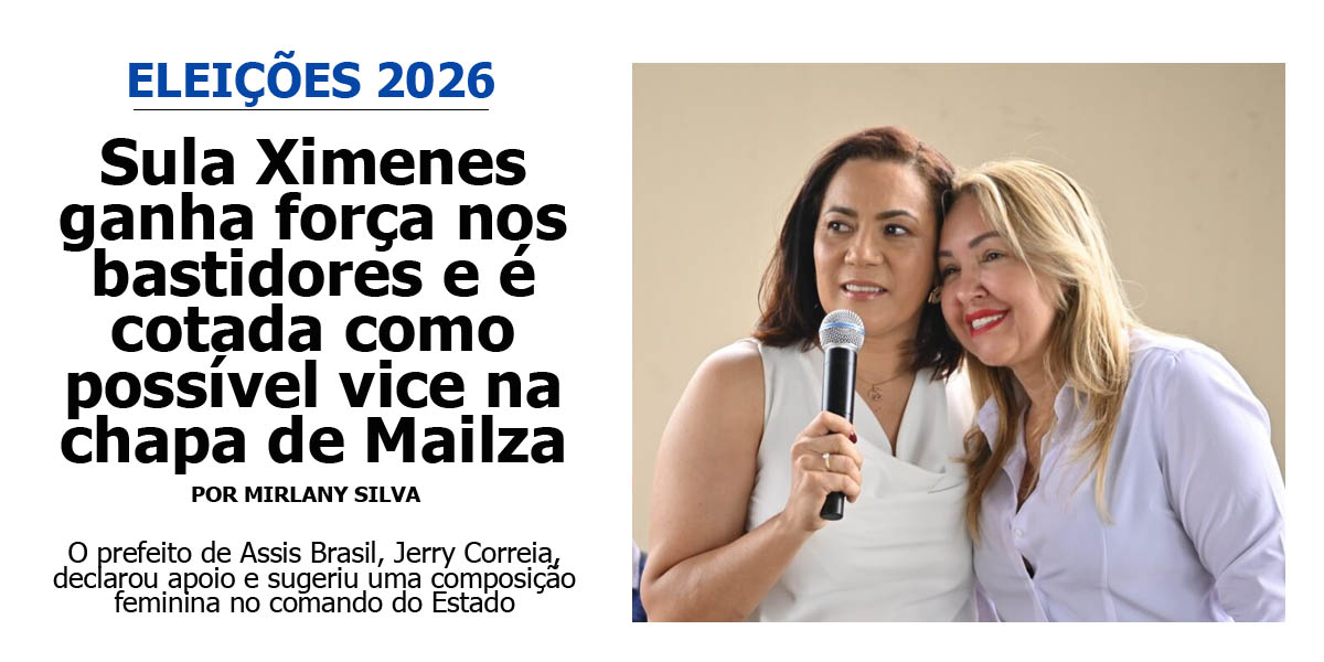 O nome de Sula Ximenes, presidente do Departamento de Estradas de Rodagem, Infraestrutura Hidroviária e Aeroviária do Acre (Deracre), tem ganhado destaque nas rodas políticas do Progressistas (PP). Internamente, começaram a considerar a gestora como um dos nomes para compor uma chapa majoritária como possível candidata a vice-governadora de Mailza Assis.