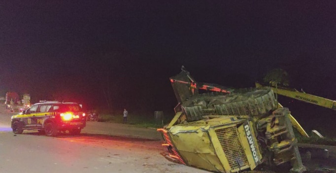 Um trator de esteira caiu de uma carreta prancha e provocou a interdição parcial da BR-364, na noite desta quarta-feira, 12, em Rio Branco. O incidente ocorreu na Via Verde, próximo à 3ª Ponte, no trecho que liga o segundo ao primeiro distrito.
