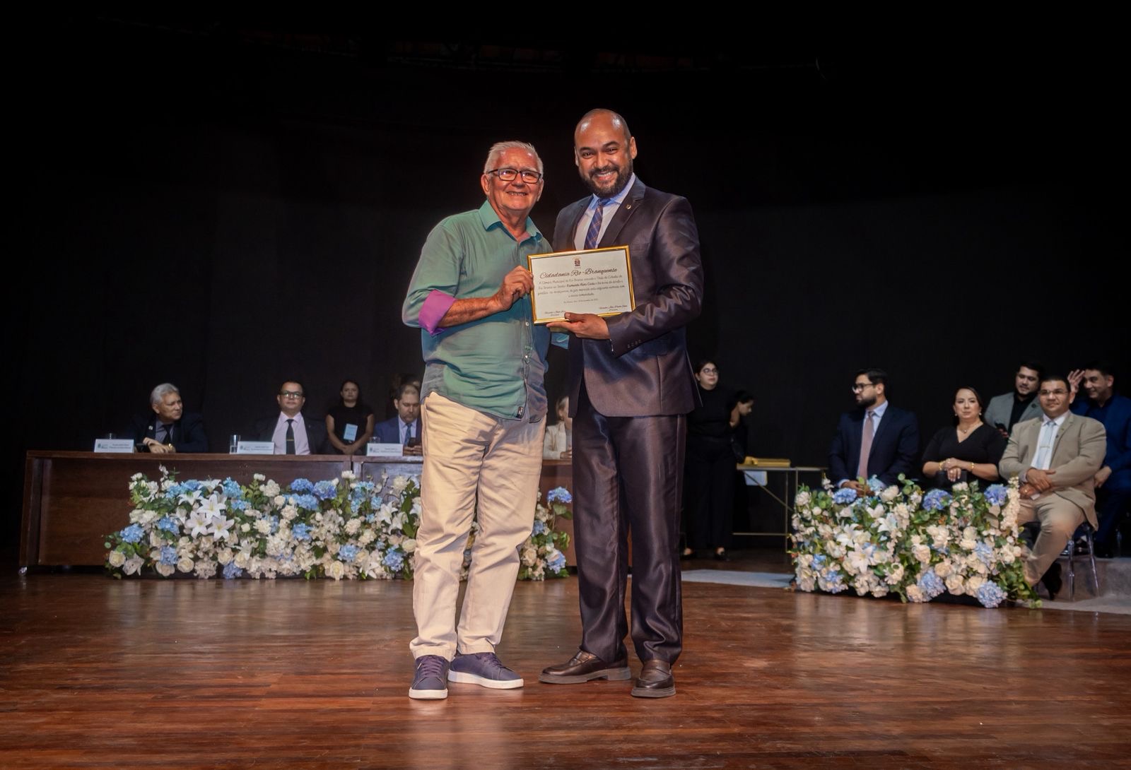 A noite desta sexta-feira (28) foi marcada por emoção e reconhecimento no auditório do Detran, onde ocorreu a Solenidade de Entrega de Títulos Honoríficos da Câmara Municipal de Rio Branco. O evento reuniu autoridades, familiares e convidados para celebrar trajetórias que contribuem de forma expressiva para o desenvolvimento da cidade e do Acre. O vereador João Paulo esteve entre os homenageadores, entregando títulos a personalidades cujo trabalho tem deixado um legado de ética, dedicação e compromisso público.