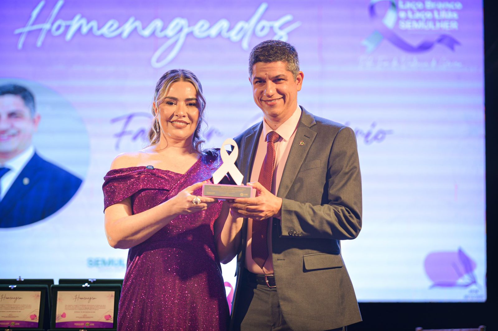 O deputado estadual Fagner Calegário foi homenageado com o Prêmio Laço Branco, um importante reconhecimento concedido a personalidades e instituições que atuam de forma efetiva na luta pelo fim da violência de gênero. A cerimônia, organizada pela Secretaria da Mulher, destacou iniciativas que fortalecem a proteção, a dignidade e os direitos das mulheres acreanas.