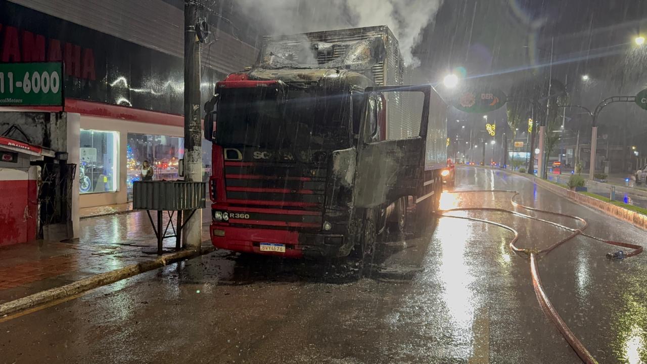 O motorista informou que parou o veículo para conversar com uma agenciadora de cargas e repentinamente a cabina começou a incendiar.