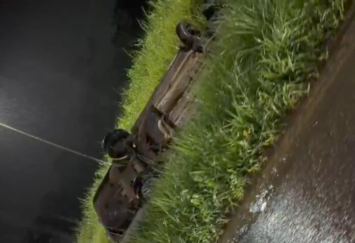 De acordo com informações apuradas no local, o motorista perdeu o controle da direção após o automóvel aquaplanar na pista molhada. Com a perda de aderência, o carro acabou capotando e parando às margens da via, chamando a atenção de outros condutores que trafegavam pela região logo após o ocorrido.