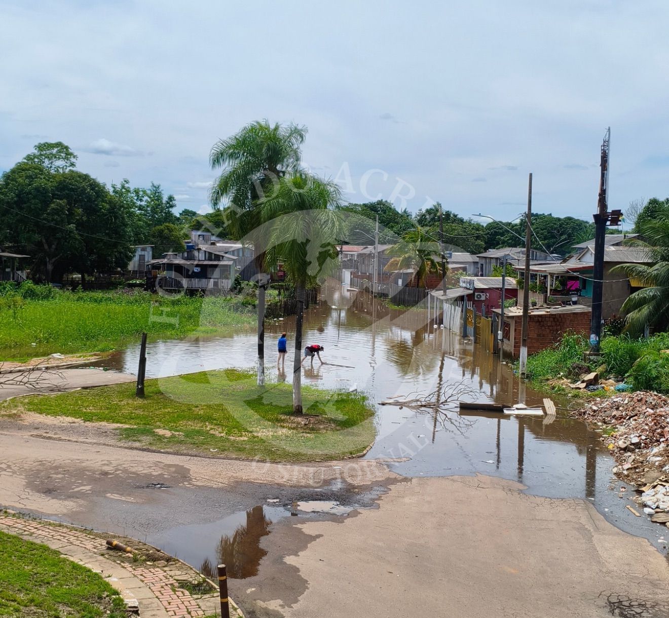 Na Rua Santa Terezinha, uma das mais afetadas do bairro, a água do rio cobre quase toda a extensão da via, dificultando a circulação de moradores e veículos. Imagens registradas pela reportagem da Folha do Acre mostram moradores atravessando áreas alagadas e convivendo com os transtornos provocados pela cheia.