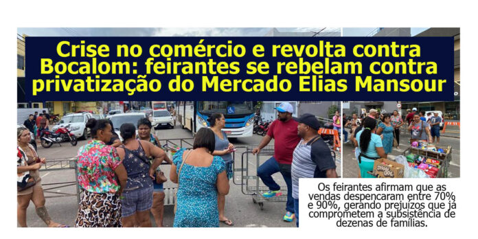 Além da queda drástica no movimento, os comerciantes protestam contra a possível privatização do Mercado Elias Mansour, medida que, segundo eles, ameaça direitos históricos e pode encarecer a permanência no local. Os feirantes também reclamam da falta de manutenção, de problemas estruturais e da dificuldade de atrair consumidores diante das atuais condições de funcionamento.