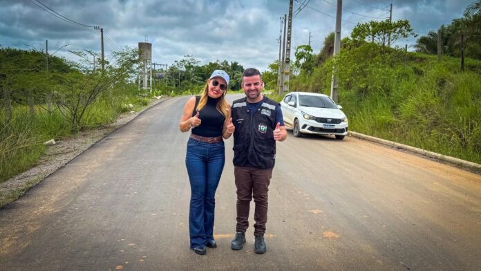 Sula Ximenes e o prefeito Rodrigo Damasceno visitaram o local para acompanhar a pavimentação e o andamento da conclusão de calçadas, drenagem, iluminação pública e sinalização.
