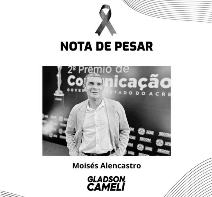 O governador do Acre, Gladson Camelí, manifestou profundo pesar pela morte do colunista social Moisés Alencastro, ocorrida na noite desta segunda-feira, 22, em Rio Branco.