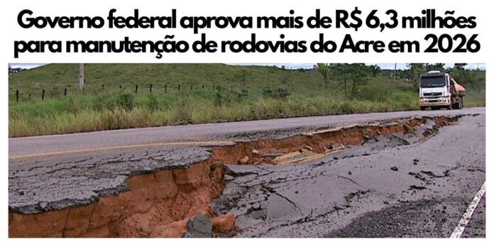 Governo federal aprova mais de R$ 6,3 milhões para manutenção de rodovias estaduais do Acre em 2026