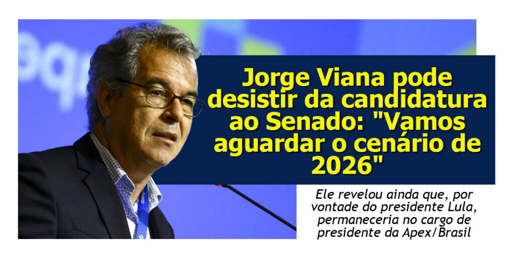O presidente da Agência Brasileira de Promoção de Exportações e Investimentos (ApexBrasil) e ex-governador do Acre, Jorge Viana, afirmou que mantém, neste momento, sua pré-candidatura ao Senado, mas destacou que a decisão ainda passará por uma reavaliação do cenário político nos primeiros meses do próximo ano. A declaração foi feita durante conversa com o Blog do Crica.