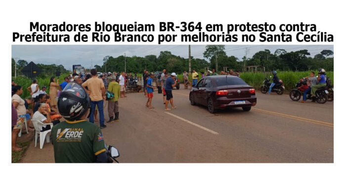 A Associação de Moradores do bairro Santa Cecília, no segundo distrito de Rio Branco, realiza na manhã desta quinta-feira, 4, uma manifestação que bloqueia o km 5 da BR-364, sentido Porto Velho, nas proximidades do posto da Polícia Rodoviária Federal (PRF).