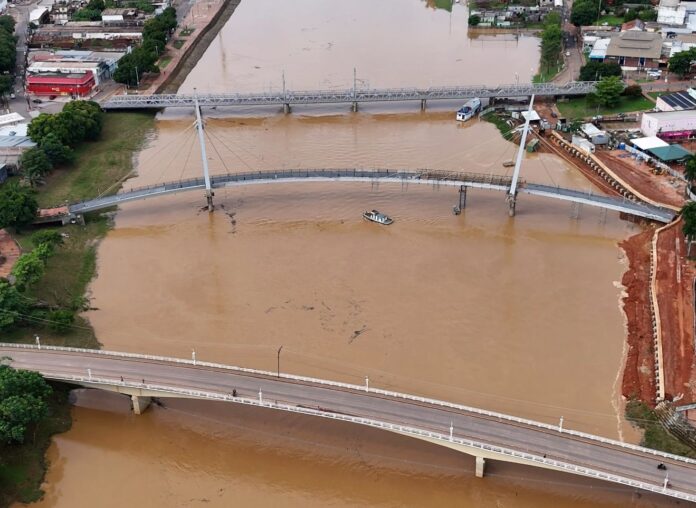Segundo a Defesa Civil, a subida é reflexo do grande volume de água acumulado das chuvas nos dias anteriores e do escoamento proveniente das regiões de cabeceira da bacia hidrográfica do Rio Acre.