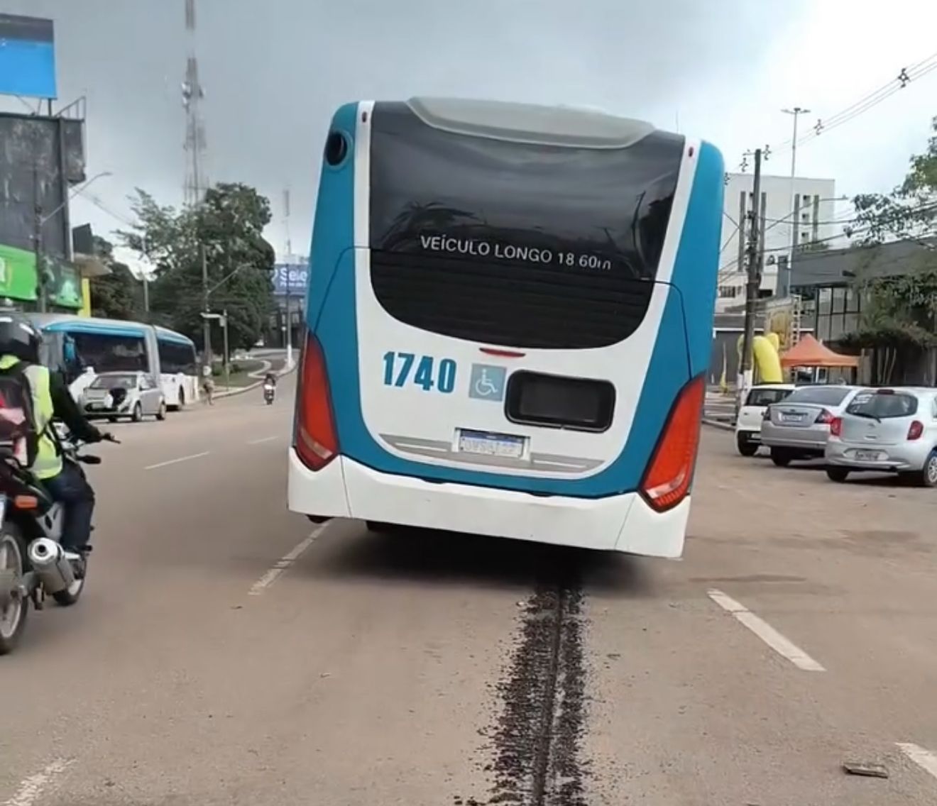 “Vejam o estrago causado no asfalto pelo ônibus que quebrou agora há pouco aqui na Avenida Ceará. Deixou um rasgo no asfalto”, relatou o advogado ao mostrar o local do incidente.